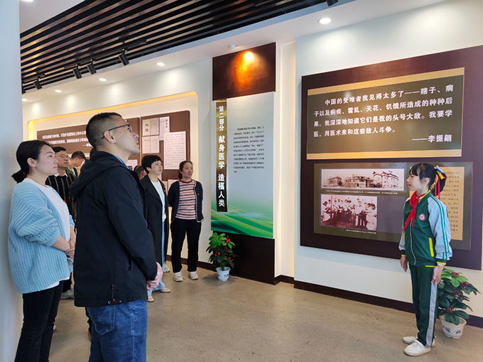 隨后,黨員們跟隨著小小解說(shuō)員的腳步,參觀(guān)了“婁底市愛(ài)國(guó)主義教育基地”、“湖南省華僑文化交流基地”李振翩愛(ài)國(guó)主義事跡館。李振翩先生是萬(wàn)寶鎮(zhèn)石埠村人,是世界著名醫(yī)學(xué)家、病毒學(xué)家、社會(huì)活動(dòng)家,是歷史上一位傳奇人物,一名偉大的科學(xué)家,曾與毛澤東在湖南從事過(guò)學(xué)生運(yùn)動(dòng),是中國(guó)共產(chǎn)黨的好朋友,是中美建交“密使”。他發(fā)明研制的小兒麻痹癥疫苗為全人類(lèi)作出了杰出貢獻(xiàn)。通過(guò)孩子們的生動(dòng)講解,大家對(duì)李振翩先生奮斗一生所取得的光輝成就和愛(ài)國(guó)主義事跡有了更深刻的了解,對(duì)振翩先生深感敬佩,同時(shí)對(duì)振翩小學(xué)的辦學(xué)理念表示了充分的認(rèn)可。