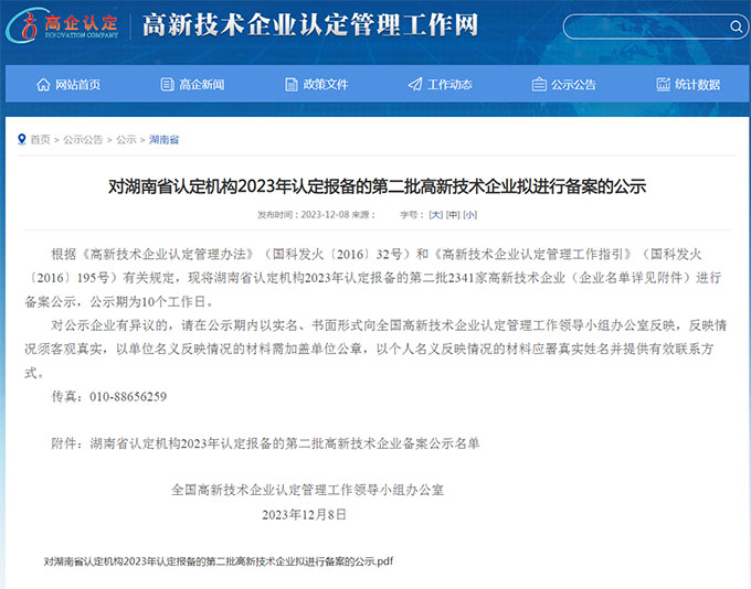2023年12月,湖南省認定機構2023年認定報備的第二批高新技術企業(yè)備案名單公示,湖南鏈城數(shù)據(jù)服務有限公司赫然在列,公司申報國家級高新技術企業(yè)獲批通過。