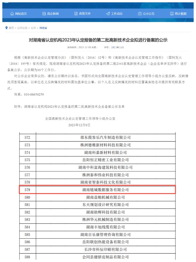 (子公司鏈城數(shù)據(jù)公司獲批國(guó)家級(jí)高新技術(shù)企業(yè))