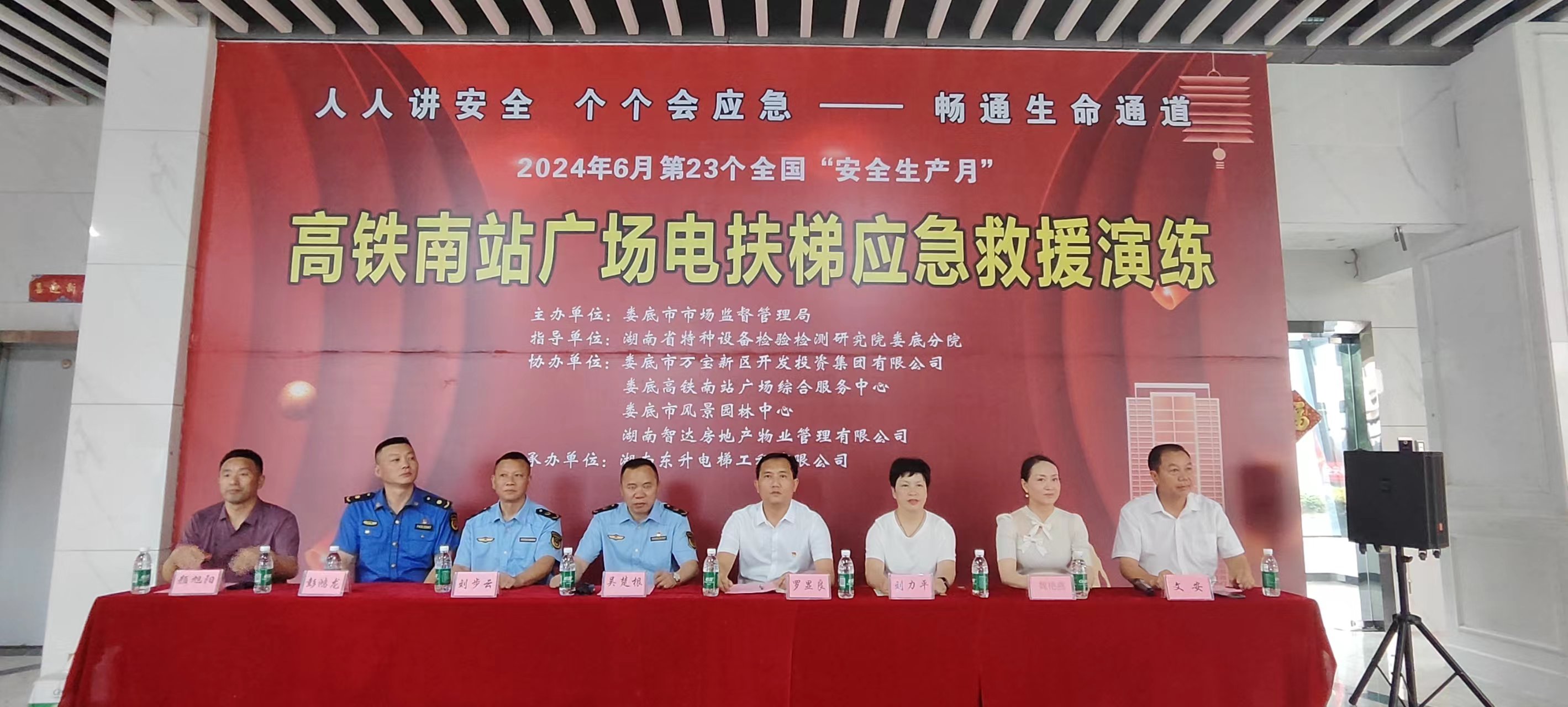 為增強安全生產意識,聚焦應對特種設備事故的快速反應和高效處置能力,6月17日上午10點,我市在高鐵南站廣場舉行電扶梯應急救援演練。本次活動由婁底市市場監(jiān)督管理局主辦,婁底市萬寶新區(qū)開發(fā)投資集團有限公司、婁底市高鐵南站廣場綜合服務中心、婁底市風景園林中心、湖南智達房地產物業(yè)管理有限公司協(xié)辦,湖南東升電梯工程有限公司承辦,湖南省特種設備檢驗檢測院婁底分院進行現場指導。