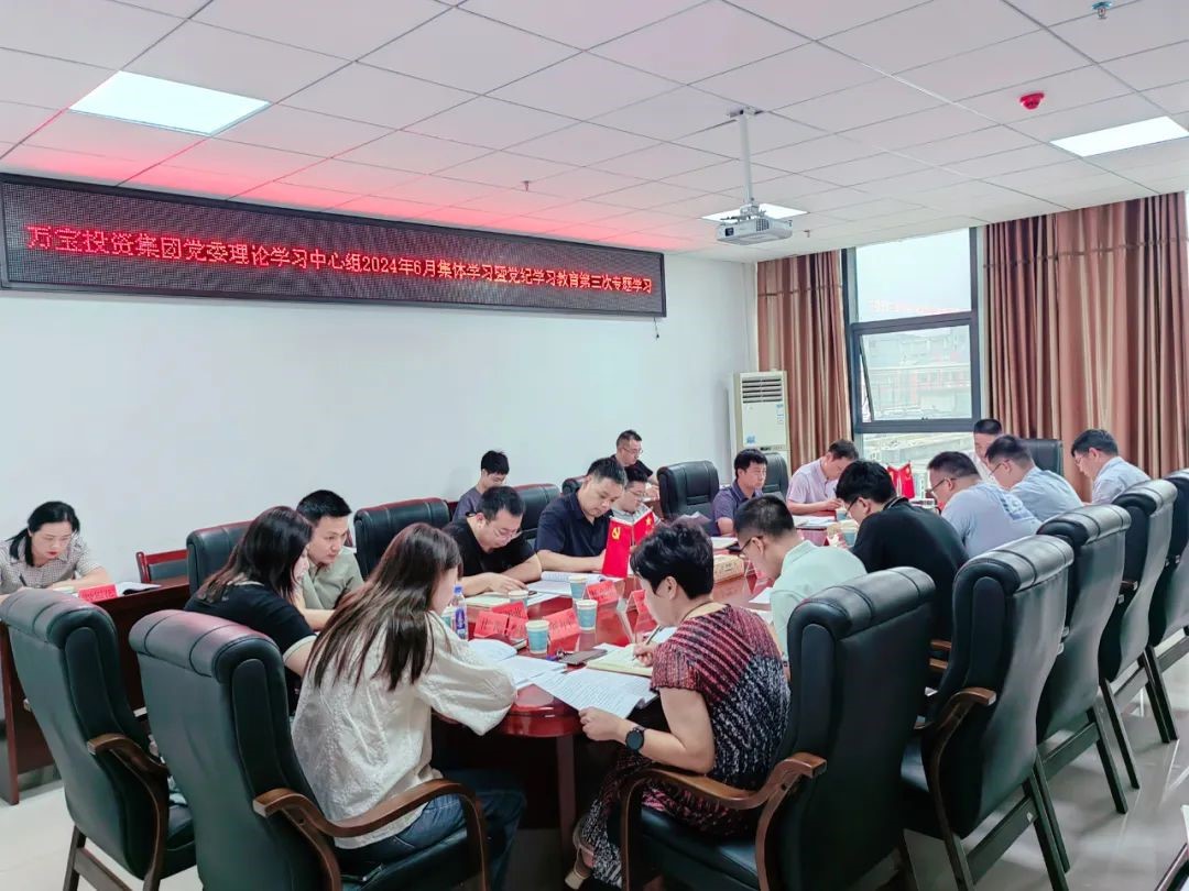 6月28日,萬寶投資集團(tuán)黨委書記、董事長陽文林主持召開黨委理論學(xué)習(xí)中心組2024年6月集體學(xué)習(xí)暨黨紀(jì)學(xué)習(xí)教育第三次專題學(xué)習(xí),深入學(xué)習(xí)領(lǐng)會(huì)習(xí)近平總書記關(guān)于全面加強(qiáng)黨的紀(jì)律建設(shè)和優(yōu)化營商環(huán)境、招商引資、民營經(jīng)濟(jì)發(fā)展的重要論述,逐章逐條學(xué)習(xí)《中國共產(chǎn)黨紀(jì)律處分條例》,推動(dòng)黨紀(jì)學(xué)習(xí)教育走深走實(shí),持續(xù)在學(xué)思用貫通、知信行統(tǒng)一上下功夫。黨委副書記、總經(jīng)理徐業(yè)波,黨委委員、紀(jì)委書記葛旭華,黨委委員易志高,全體主管及以上人員參加。