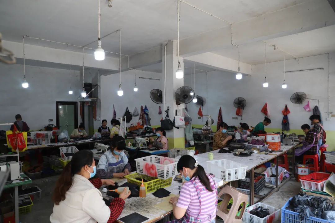 (圖為大田村村民在家門口的駿翔皮具廠務(wù)工)