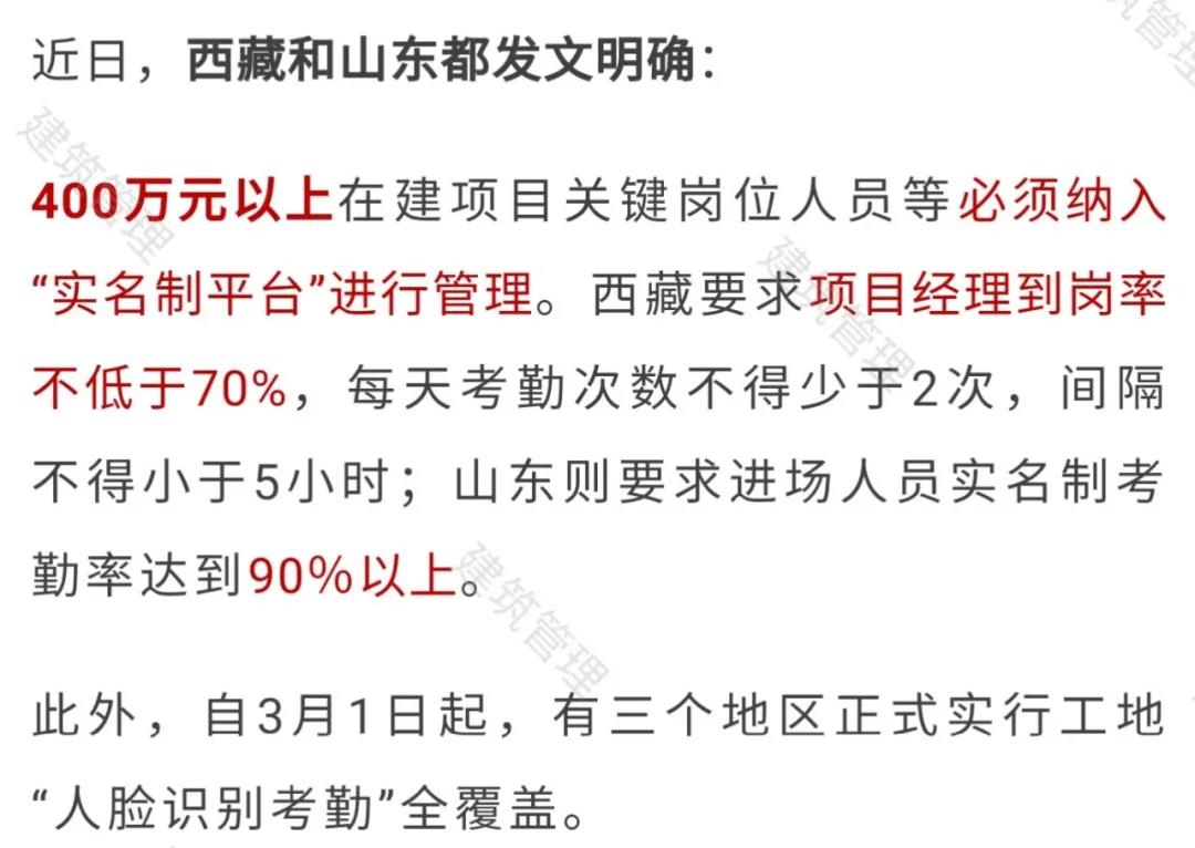 (一)在工程建設(shè)過(guò)程中,項(xiàng)目經(jīng)理在崗履職時(shí)間不應(yīng)少于本月施工時(shí)間的70%,總監(jiān)理工程師在崗履職時(shí)間不應(yīng)少于本月施工時(shí)間的40%(當(dāng)月施工時(shí)間如無(wú)放假、請(qǐng)假及其他特殊原因的按照當(dāng)月日歷天數(shù)計(jì)算),建設(shè)單位關(guān)鍵崗位人員到崗率不應(yīng)低于30%,整個(gè)項(xiàng)目關(guān)鍵崗位人員綜合到崗率不應(yīng)低于60%。對(duì)于項(xiàng)目關(guān)鍵崗位人員到崗率不滿(mǎn)足要求的,“實(shí)名制平臺(tái)”將自動(dòng)生成預(yù)警,各級(jí)住房和城鄉(xiāng)建設(shè)主管部門(mén)應(yīng)對(duì)相關(guān)項(xiàng)目列入“重點(diǎn)監(jiān)管對(duì)象”。建設(shè)單位、施工企業(yè)、監(jiān)理企業(yè)及其人員在人臉識(shí)別考勤中弄虛作假、偽造的,一經(jīng)發(fā)現(xiàn),按未到崗履職處理。
