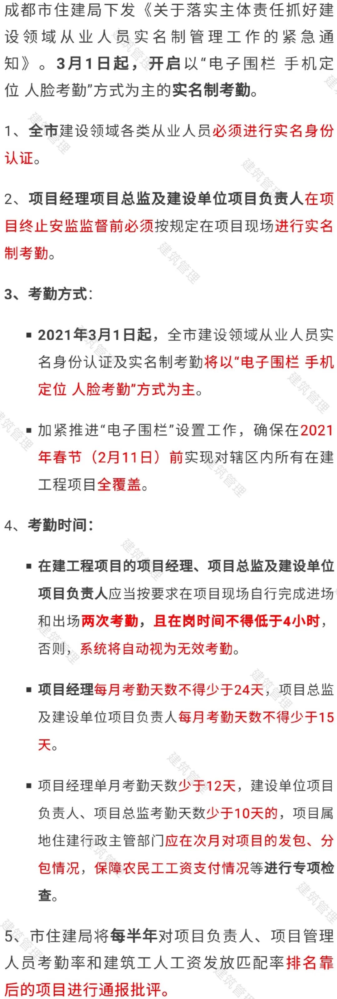 (三)落實(shí)主體責(zé)任,積極主動(dòng)作為。各建設(shè)、施工、監(jiān)理單位要立即對(duì)所屬項(xiàng)目認(rèn)真開(kāi)展全面自查自糾,對(duì)標(biāo)施工現(xiàn)場(chǎng)關(guān)鍵崗位人員在崗信息化考勤工作和建筑工人實(shí)名制管理規(guī)定,完善企業(yè)內(nèi)部管理制度,加強(qiáng)施工現(xiàn)場(chǎng)設(shè)備設(shè)施的安裝維護(hù)和相關(guān)人員信息采集工作,確保項(xiàng)目開(kāi)復(fù)工時(shí)系統(tǒng)使用正常。對(duì)于不能到崗履職的關(guān)鍵崗位人員要依法依規(guī)及時(shí)進(jìn)行變更,同時(shí)向項(xiàng)目施工許可證核發(fā)單位報(bào)備,通過(guò)“一體化平臺(tái)”進(jìn)行信息變更并在“實(shí)名制平臺(tái)”進(jìn)行調(diào)整。建設(shè)單位要嚴(yán)格監(jiān)督項(xiàng)目施工現(xiàn)場(chǎng)關(guān)鍵崗位人員到崗履職和執(zhí)行考勤制度情況,發(fā)現(xiàn)人員長(zhǎng)期不到崗的及時(shí)向?qū)俚刈》亢统青l(xiāng)建設(shè)主管部門(mén)報(bào)告。